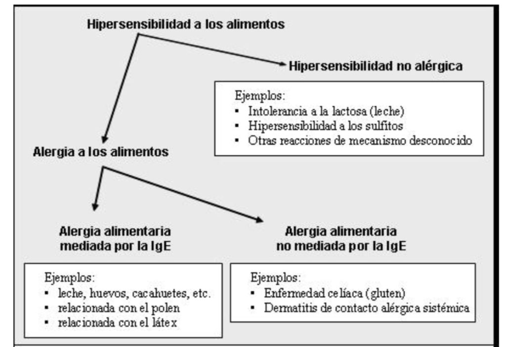En la siguiente imagen podéis ver la clasificación que realiza la Organización Mundial de la Salud sobre las alergias alimentarias, enfermedad celiaca y otras hipersensibilidades alimentarias.