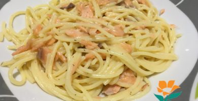 PASTA CON SALMÓN Y NATA VEGETAL (SIN GLUTEN, SIN HUEVO Y SIN LÁCTEOS APLV)