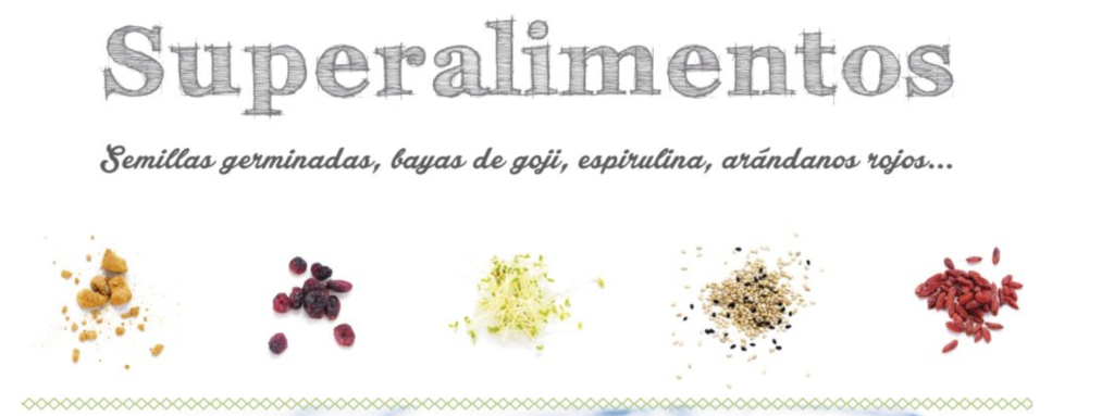 Si nombramos “acerola, azaí, maca, granada, arándanos rojos, bayas de goji, sésamo, nueces de Brasil, semillas de chía, semillas de lino, algas (espirulina, chlorella…), kale, cúrcuma, jengibre, cacao crudo, algarroba, té matcha…”, lo más seguro es que nos suenen muchos, otros no, de hecho, algunos todavía no los conozco ni yo.