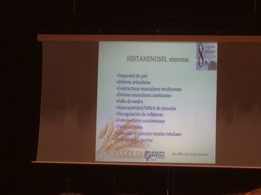 12:02: Histaminosis perdida de la salud por una ingesta moderada de un alimento en buen estado, capaces de provocar una liberación de histamina endógena , por un mecanismo inmunológico no alérgico, acumulándose en el cuerpo y provocando una sintomatología,. Hasta el momento no hay base genética conocida.