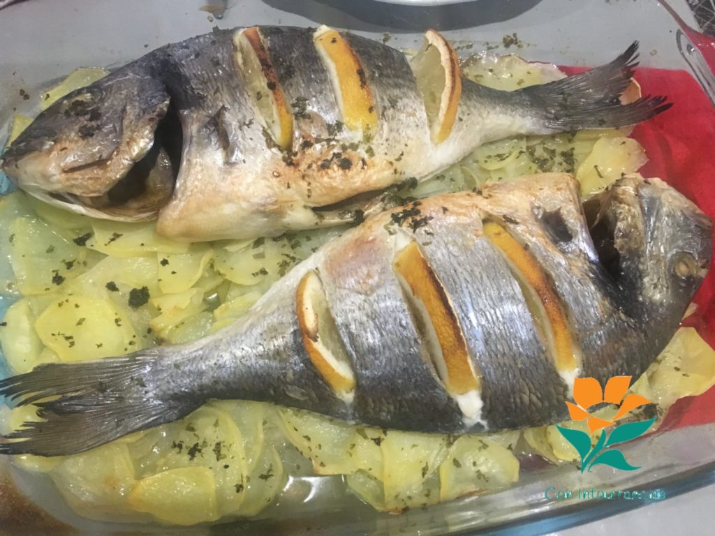 – 2 doradas enteras, sin tripas ni escamas.