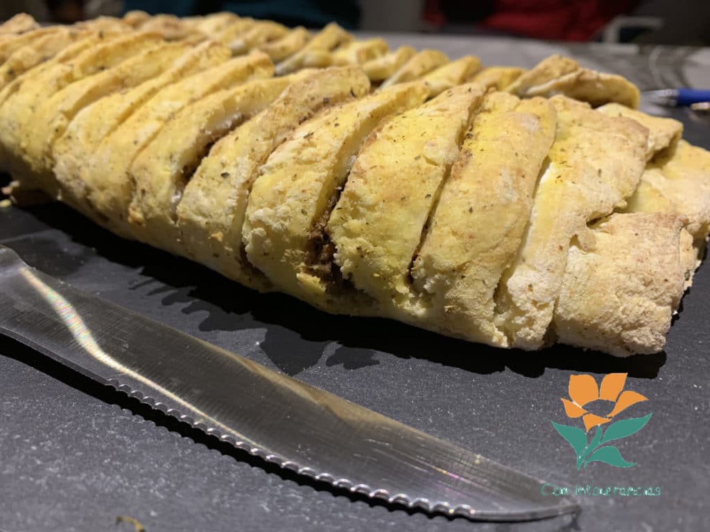 El año pasado realicé esta empanada sin gluten y vegana de boniato, champiñones y setas y está… ¡deliciosa! Como es vegana, es naturalmente sin lácteos y sin huevo, es sin frutos secos y sin soja. La mezcla de sabores es espectacular. La receta original es de “Mis recetas veganas” (https://recetasveganas.net/recipes/rollo-verduras-vegano-navidad) y agradezco enormemente a Jenny Rodríguez las maravillosas recetas que tiene en su web, las cuales están riquísimas, ésta especialmente.