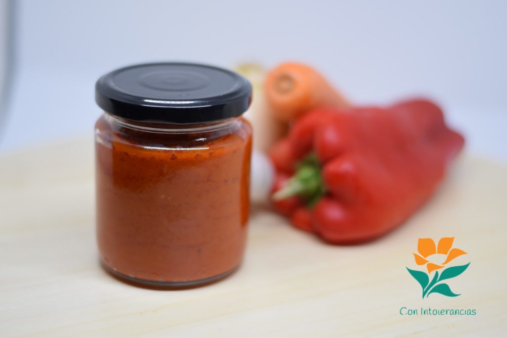 En cuanto a las salsas, pensando un día, me dije que tal vez habría algún modo de hacer alguna salsa parecida, un “falso tomate frito” que no llevara tomate y, pensando en su color, pensé en el pimiento. ¿Podría hacer una salsa “falso tomate frito” con pimiento y que diera un sabor, aunque distinto, algo suave, que pudiera sustituir en algunos platos? Y después de probar… la respuesta ¡fue sí!
